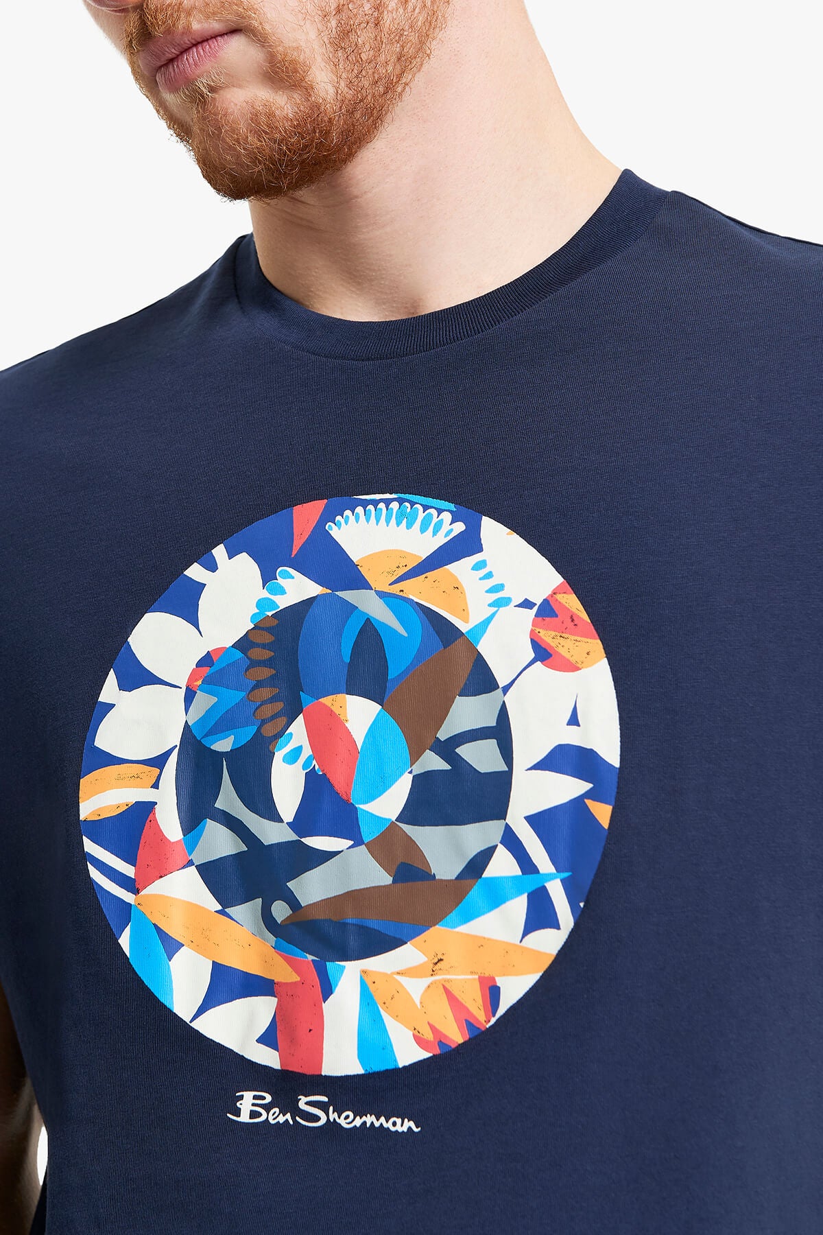 100% GOTS certified organic cotton t-shirt in a regular fit. With a nod to our heritage this style features an abstract tropical target pigment print.