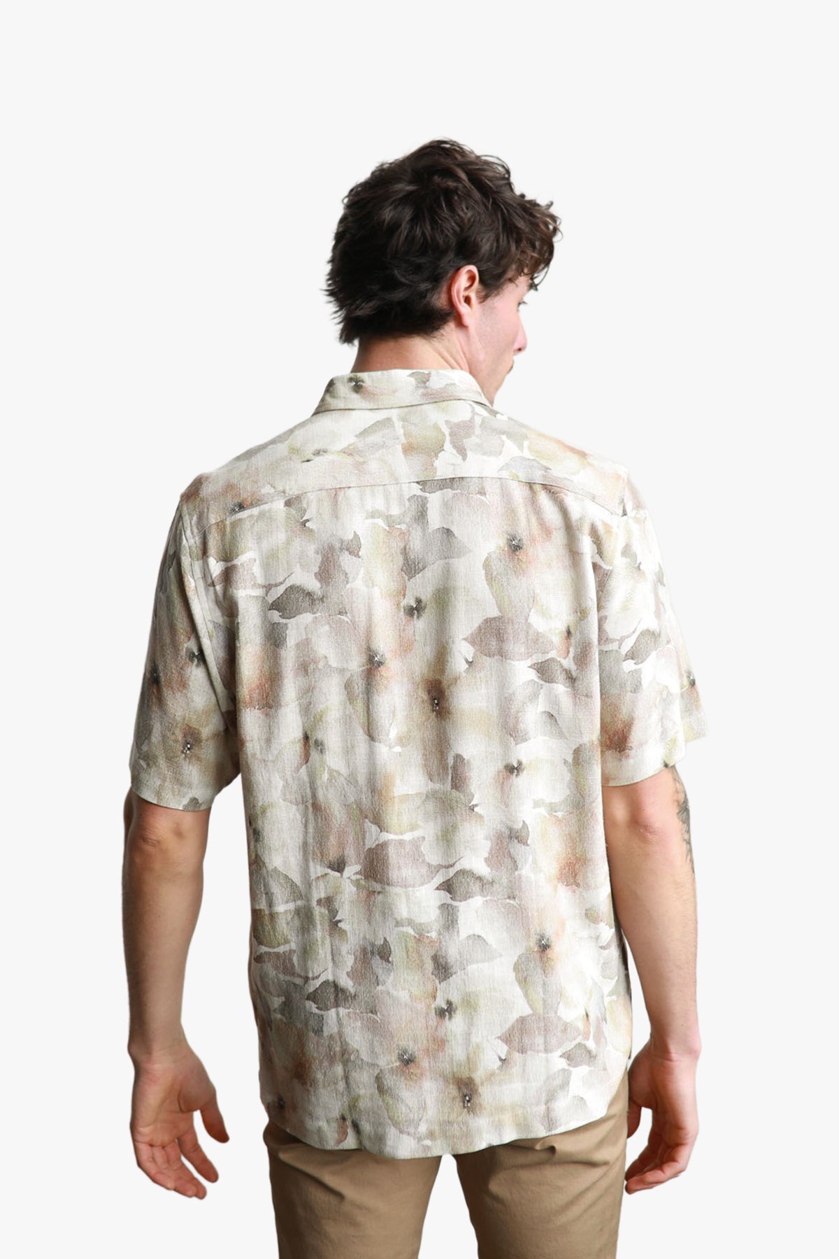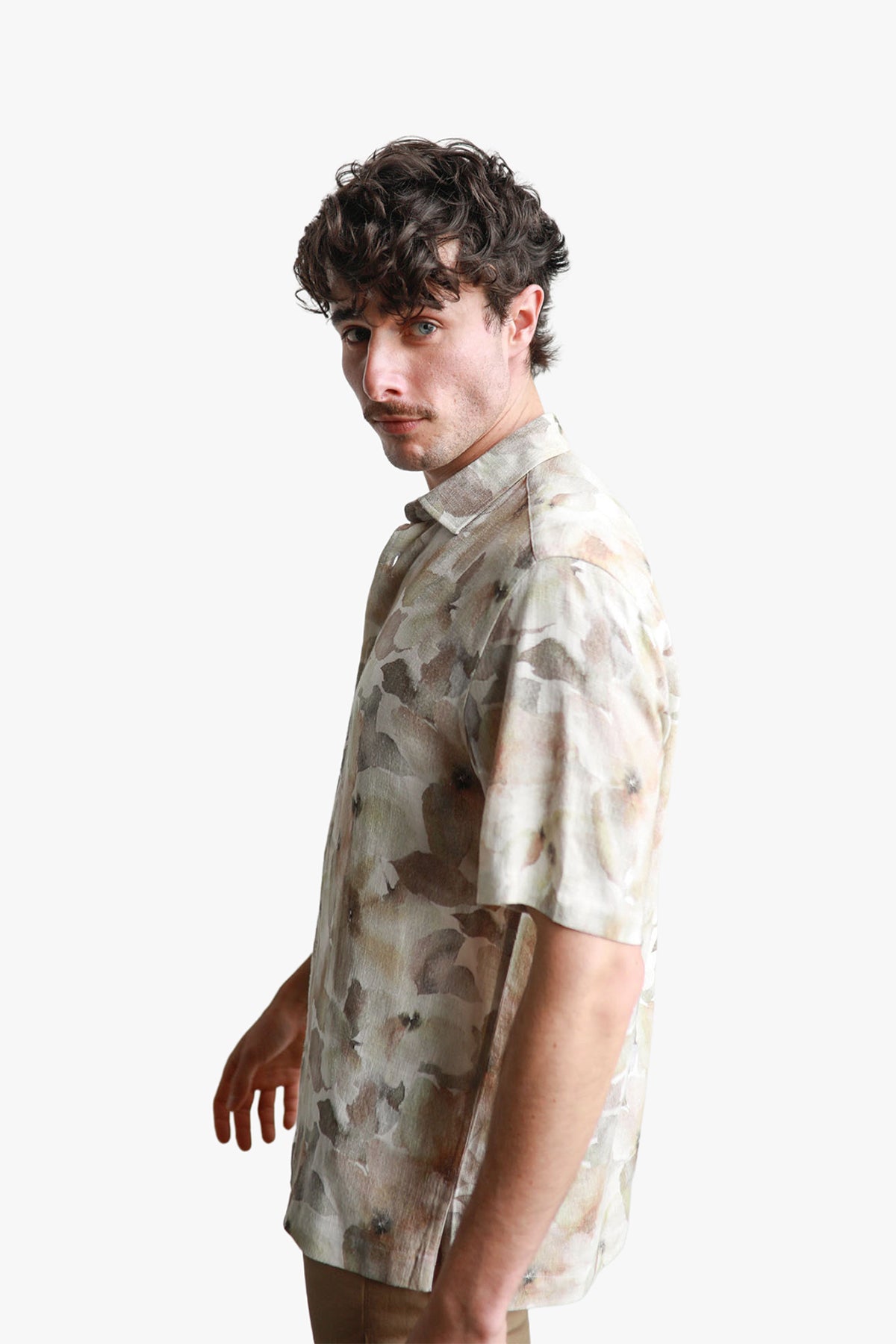 Elevate your wardrobe with this linen shirt showcasing a calming floral watercolor print in cool, natural hues and a digitally printed supersoft finish for ultimate comfort.