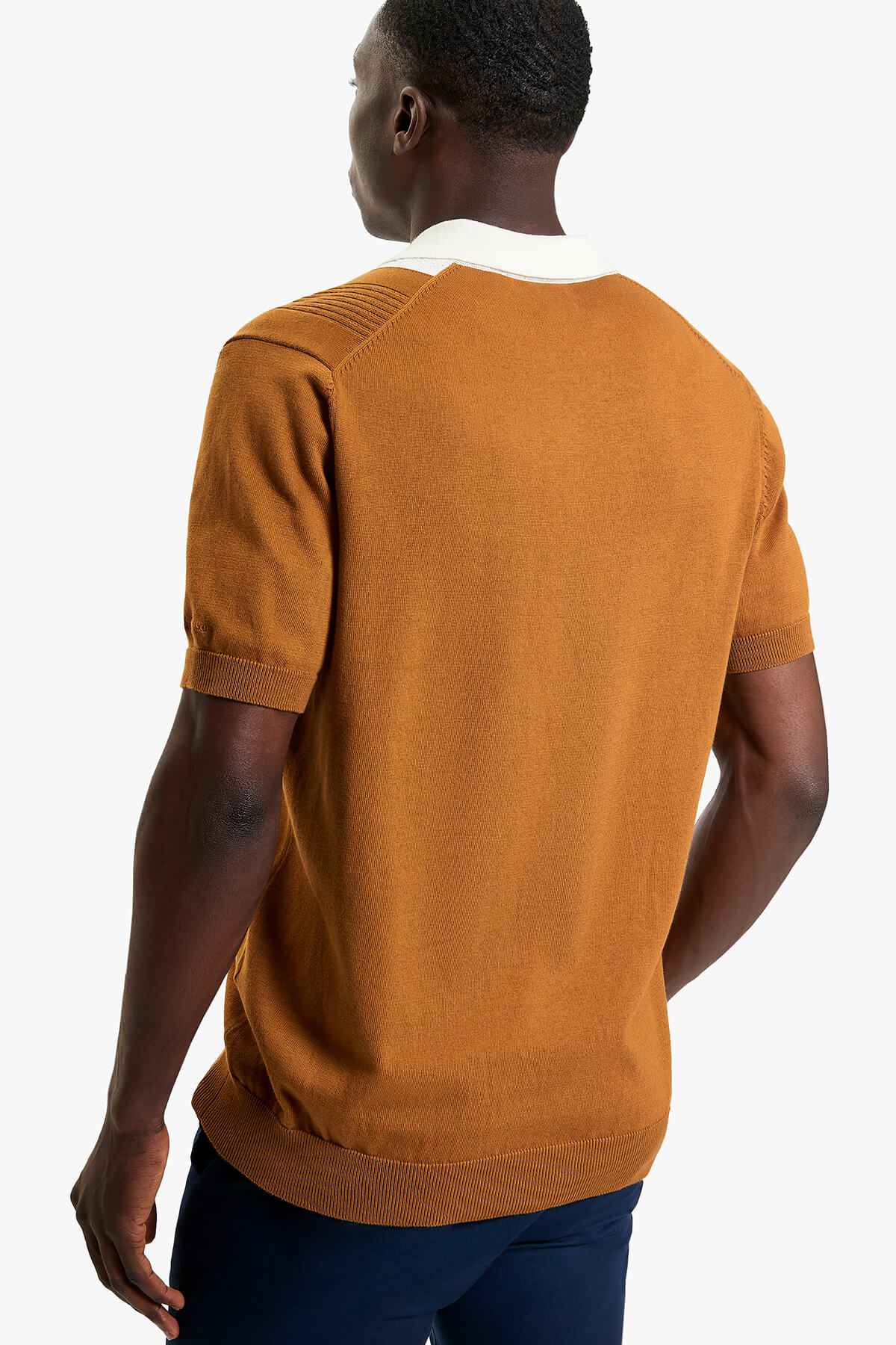 This short sleeve textured block stripe knitted polo features a 3-button placket and a Ben Sherman™ embroidery on the left sleeve. A regular fit, made from 100% cotton.