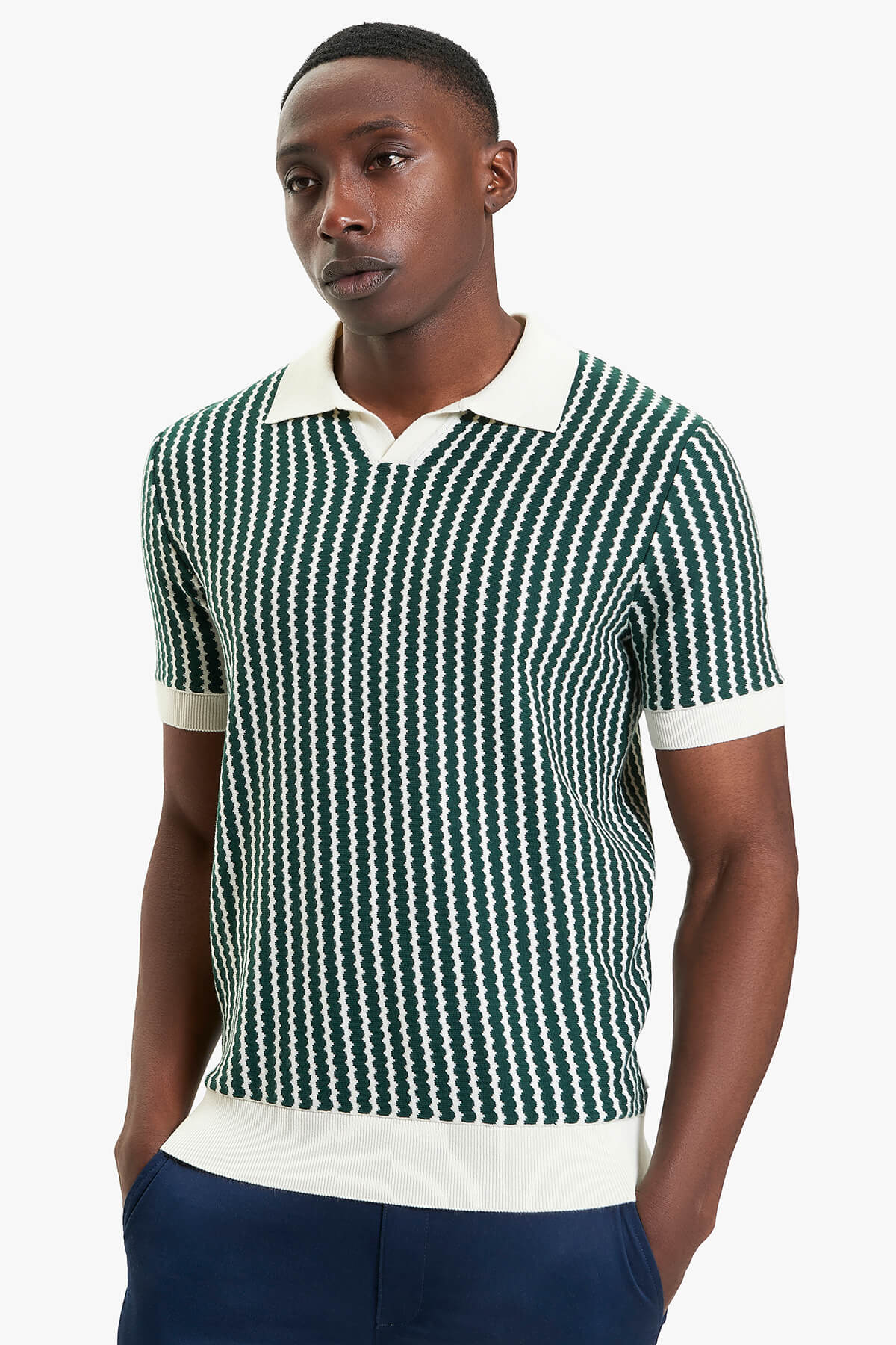Made from 100% cotton, this relaxed open neck knitted polo features a vertical wave design and a Ben Sherman™ branded woven label at the side seam.