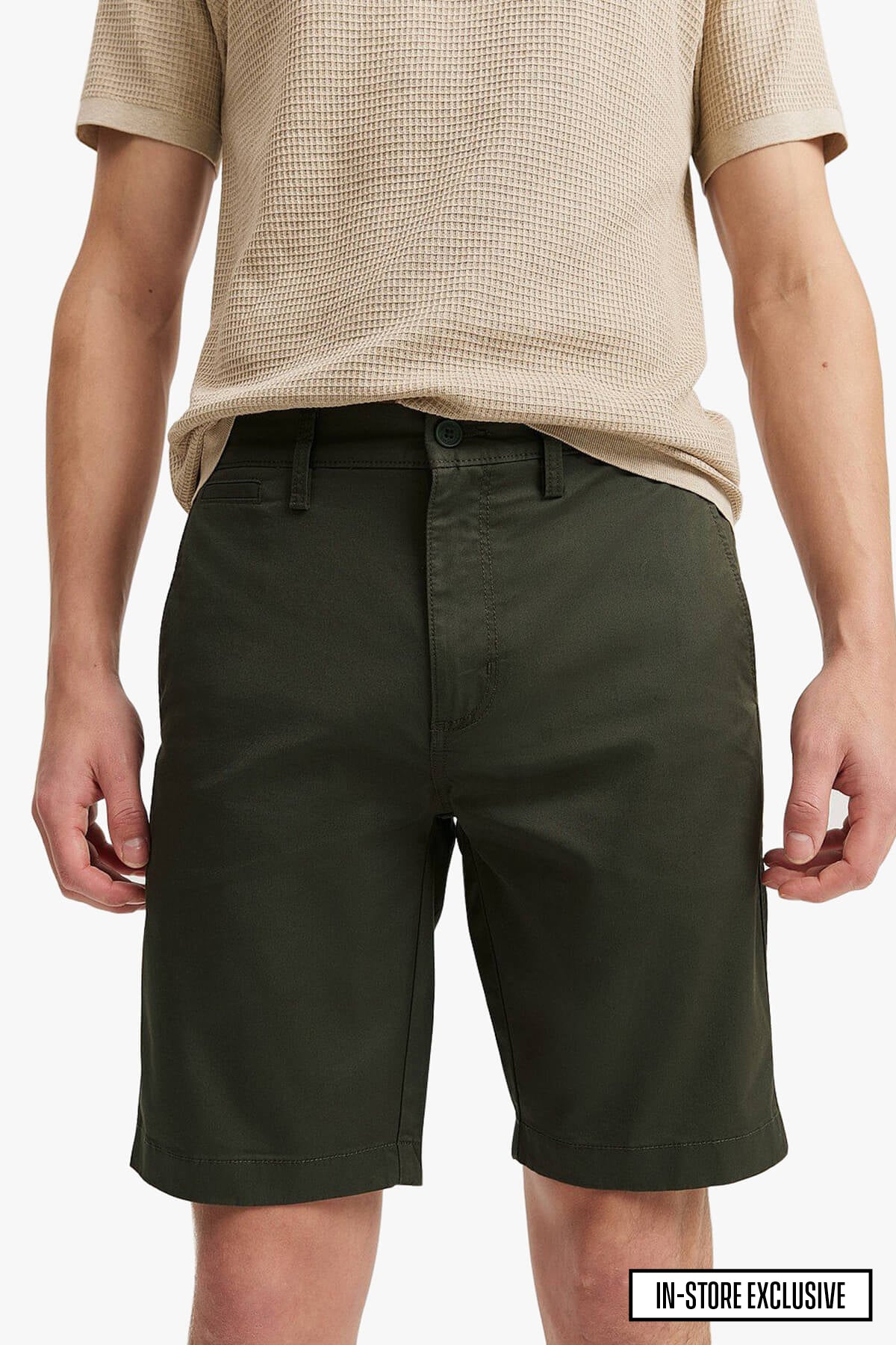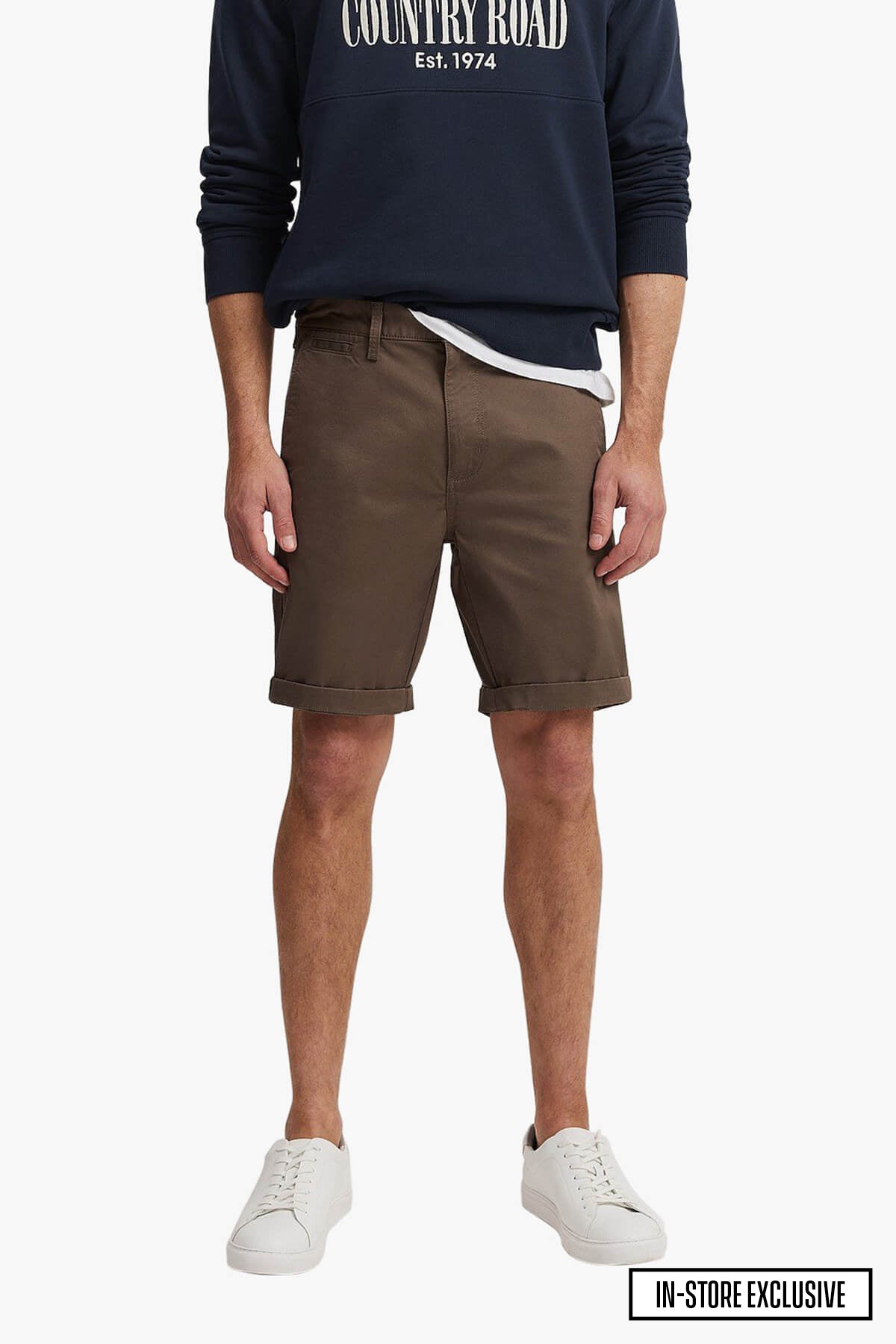 Our Stretch Chino Short is proudly made using Verified Australian cotton. We partner with Oritain to scientifically trace our Verified fibres back to Australian farms.This fabric is crisp yet comfortable against the skin, with a hint of stretch to maintain its shape. It's cut in a standard fit with a zip fly and belt loops. In the manufacture of our Chino, our supplier employs a low-water garment wash system to reduce the amount of water used in the finishing of the fabric.