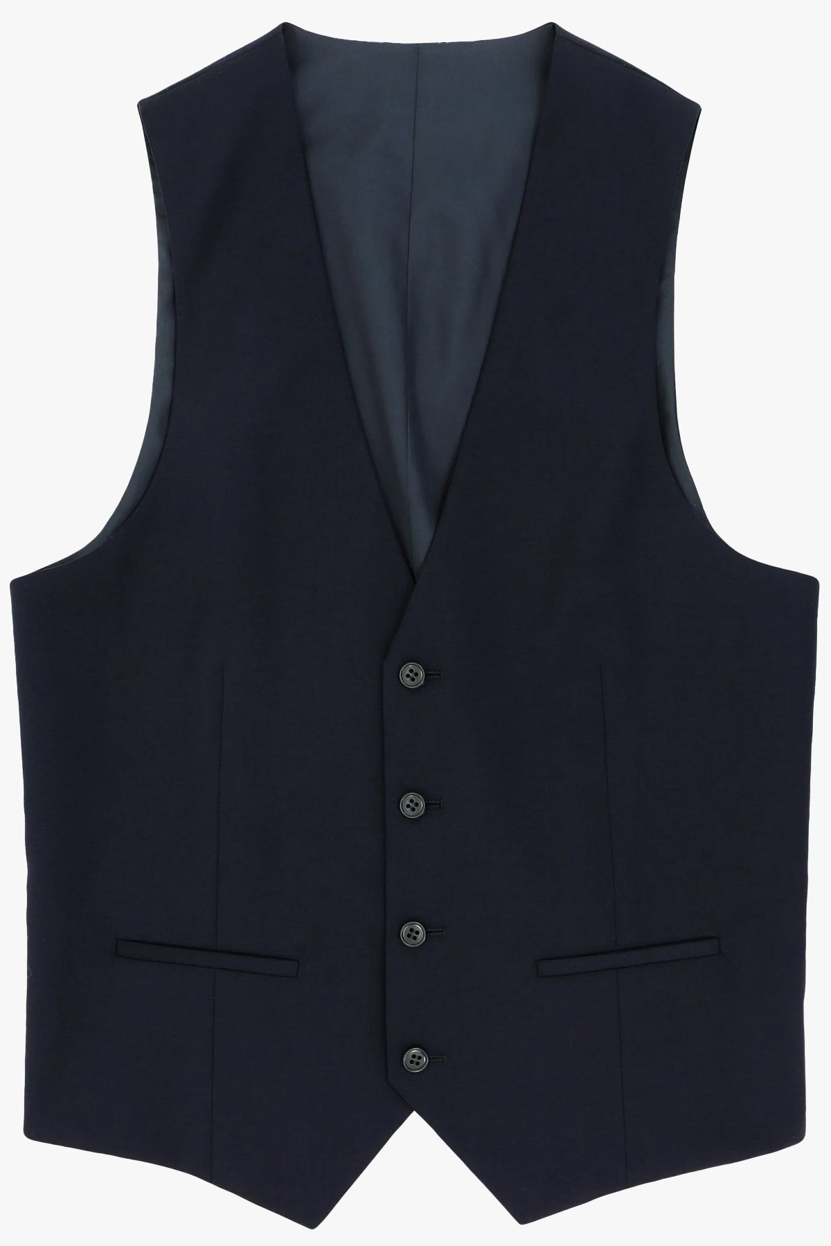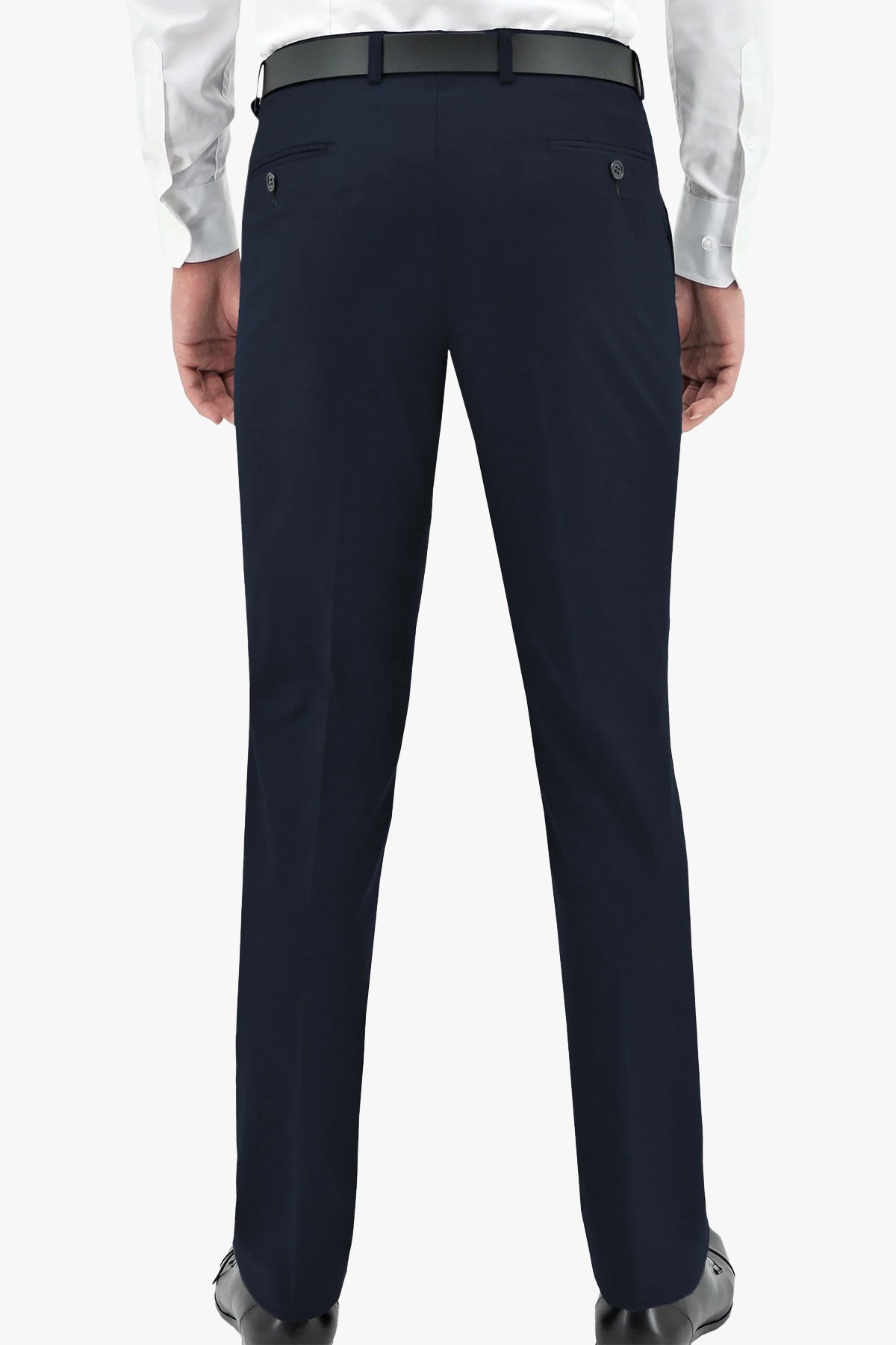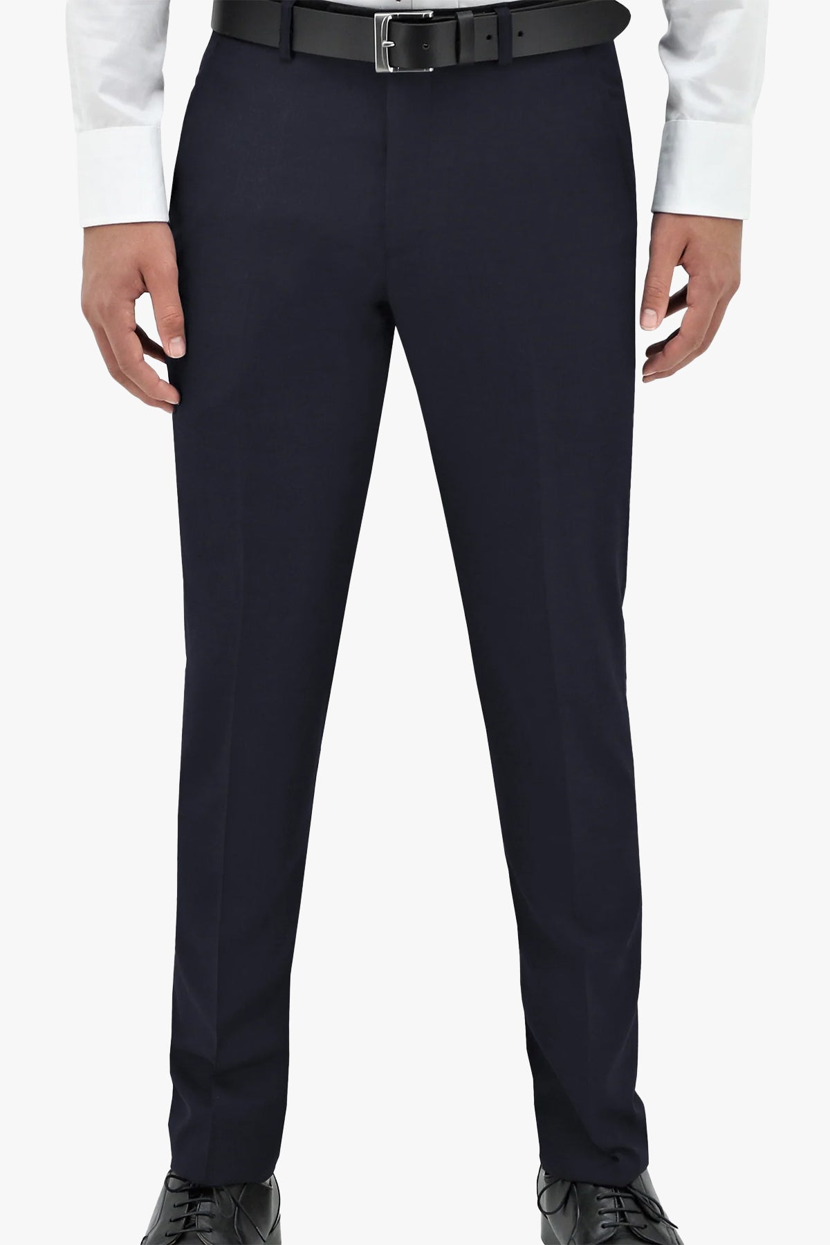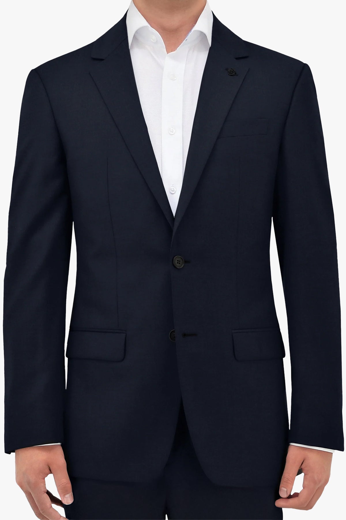 The Louis/Dean Suit is a tailored fit suit with a navy colour palette. The jacket is single-breasted with flap pockets and a notch lapel. The trouser is tailored with two front pockets and rear buttoned pockets