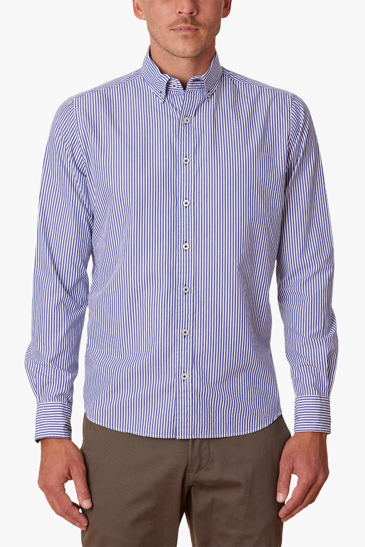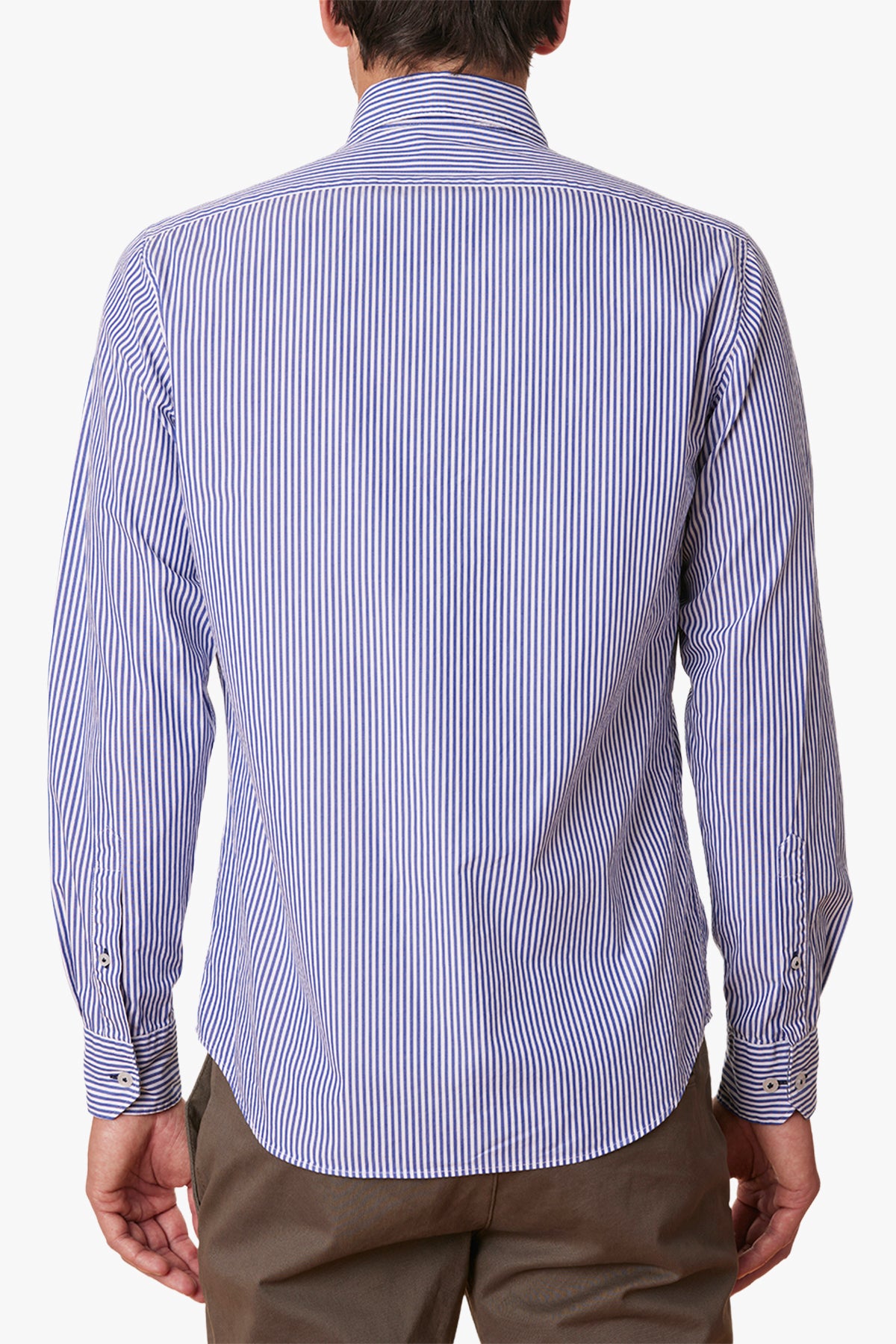 Elevate your casual wardrobe with the Abelard Montesilvano Stripe Shirt. Crafted from premium cotton poplin, this slim fit design delivers a refined silhouette that works effortlessly from weekend to weekday. The distinctive vintage wash gives it an instantly lived-in character, while thoughtful tonal trim details on the interior add a touch of sophistication. A versatile piece that becomes an instant go-to in your collection.